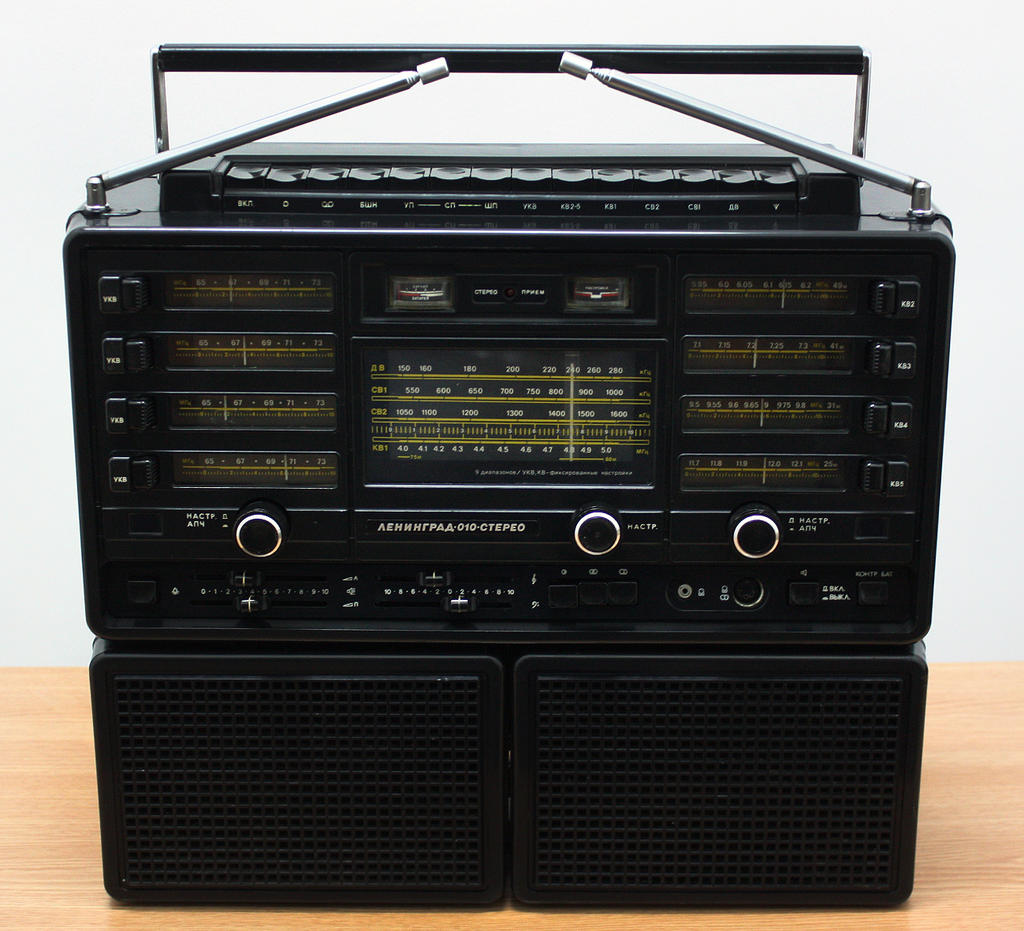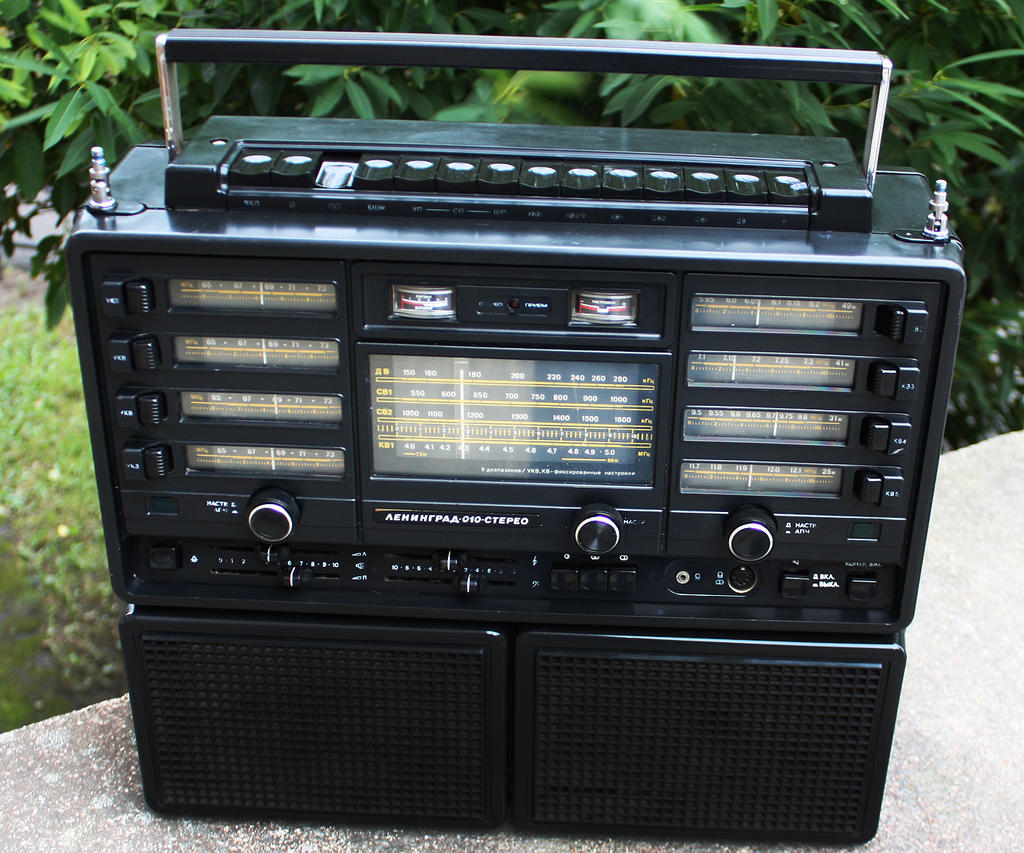 А если серьёзно, то радио-(точка) висело в моей комнате наверное ещё с ясельного возраста и почему-то не выключалось! Но к своей радиоле отец в детстве меня не подпускал, т.к. я мог сбить его настройки на "Голос Америки" и "Радиостанцию Свобода". Он как в старых фильмах прижав ухо к динамику внимательно слушал все новости из-за бугра, наверное шпионом ихним был?  А для пущего туману напускал табачного дыму так, что в его комнате можно было задохнуться! Ведь напротив нас в 200 метрах на пустыре стояли огромные глушители подвешенные между почти 100 метровыми вышками опорами как у ЛЭП , но только между ними висели не провода а кольца разного размера и они глушили все "вражеские голоса" включая "Сева, Сева Новгородцев, город Лондон BBC". Из-за этого отцу приходилось постоянно крутить колесо настройки т.к. на волне то и дело были разные помехи! Помню за дверью еле слышные голоса через постоянный шум от глушителей, зелёное стекло и внутри под ним видна верёвочка со стрелкой, а снаружи была нанесена разметка... Лондон, Париж, Нью-Йорк, Варшава и т.д. В общем чтоб я отстал от отцовской радиолы родители поставили в моей комнате 3-х программный советский радиоприёмник с светящимися электронными часами, вот это была вещь! М.б. там было и местное радио или даже два! А ещё помню единственные в СССР огромные стерео радиоприёмники ВЫСШЕГО класса "Ленинград... 010" и это было по тем временам настоящее чудо! Большой с 2 антенами и 2 колонками, круче чем "Океан". У нас в соседнем дворе жил один парень и он каждый день выносил такой во двор и ставил его на скамейку, а мы все бегали туда слушать!
